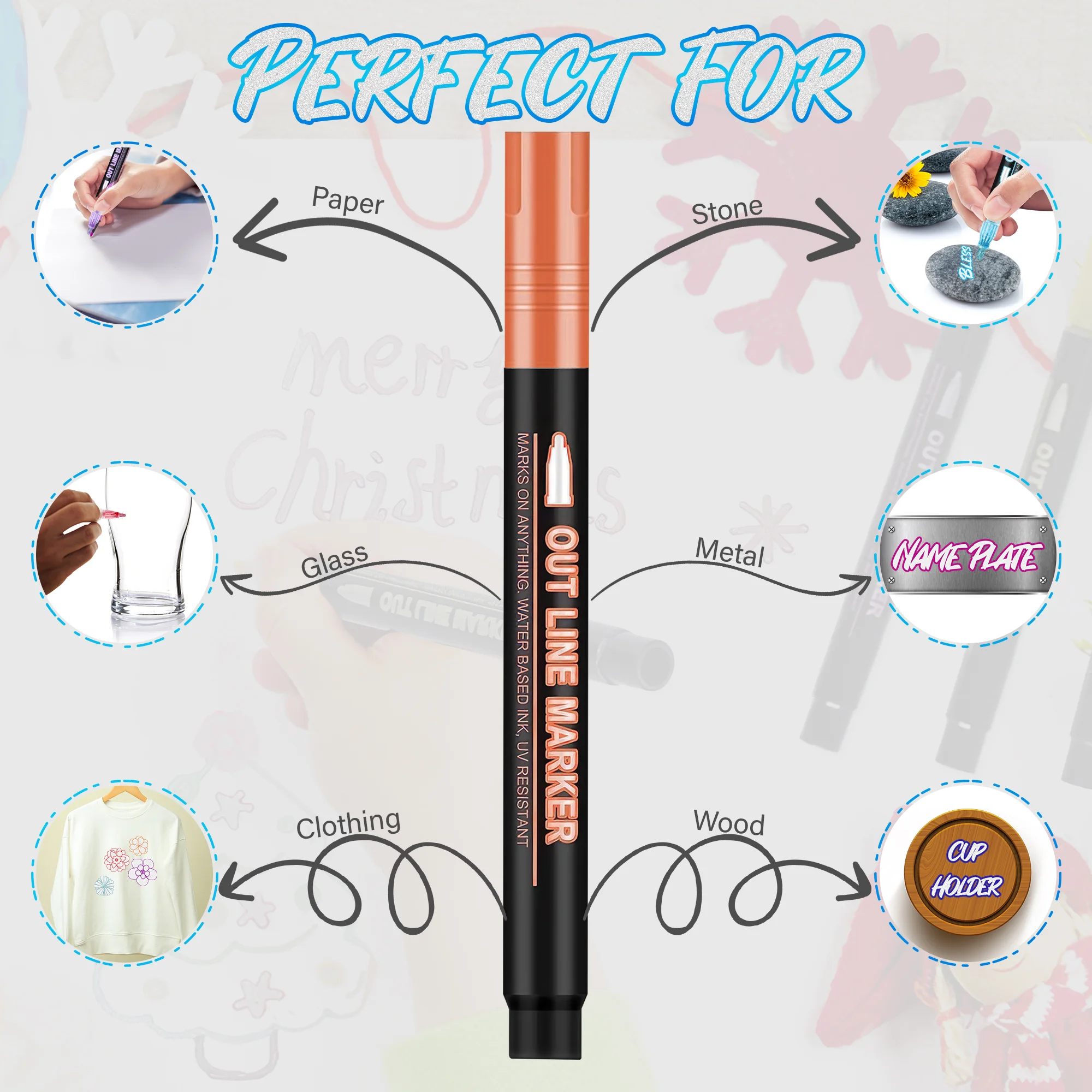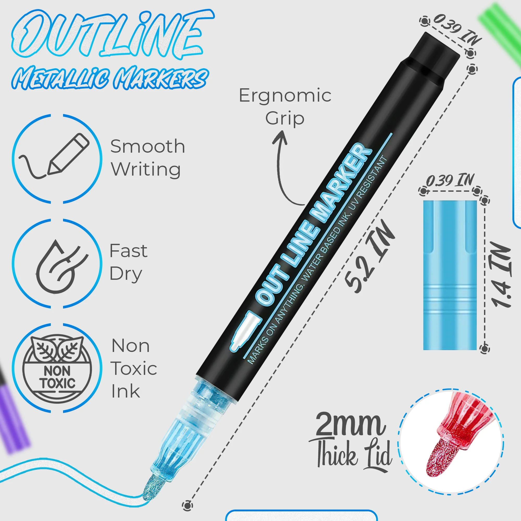 • DURABLE AND QUICK-DRYING INK — With these metallic outline markers, enjoy clean, smudge-free lines with quick-drying ink that prevents smears. Your artwork remains pristine on any surface, thanks to the reliable dazzler markers formula. Maintain crisp, clear details that ensure your creative efforts with the fancy markers always look their best