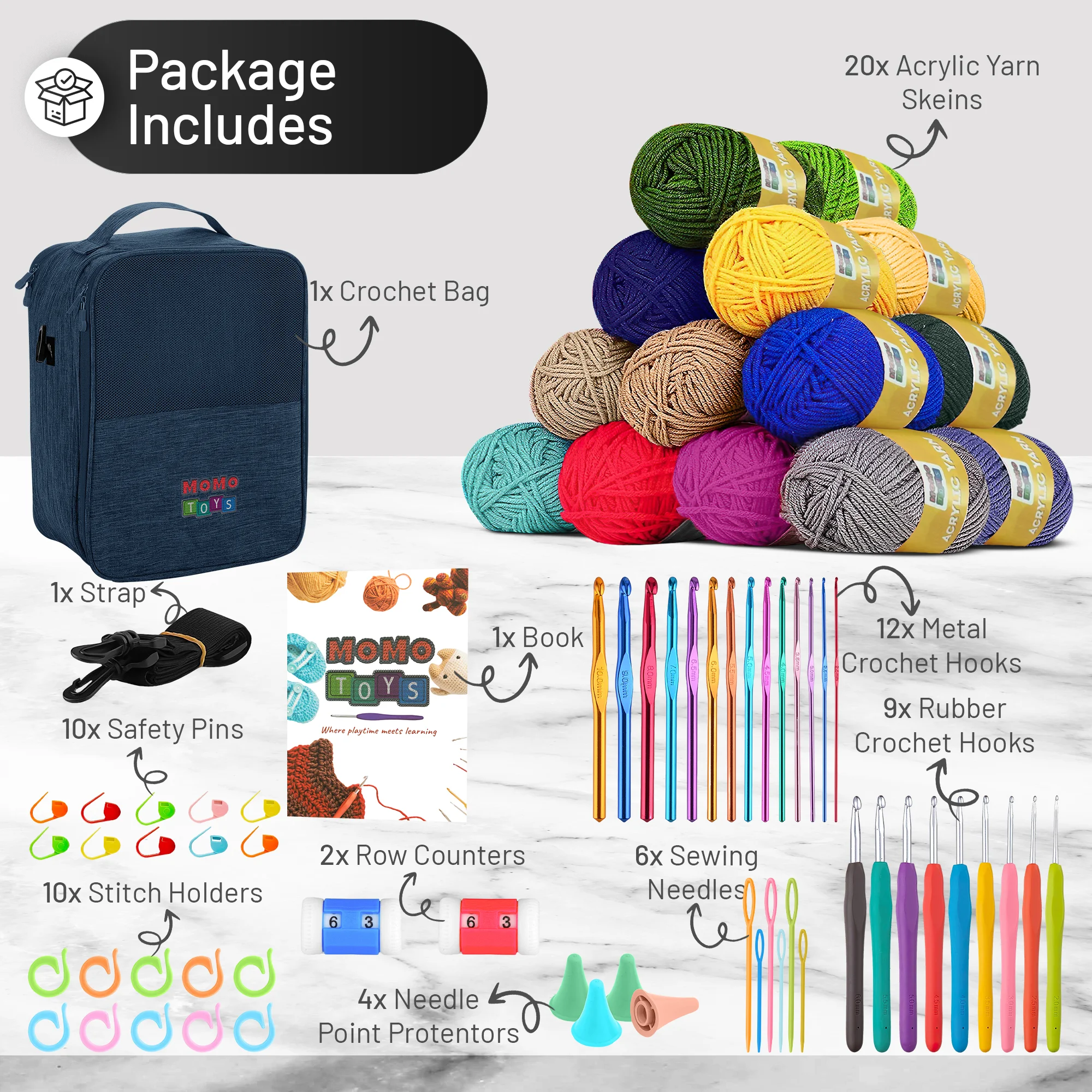 MOMOTOYS Crochet Kits 20 yarns + Crochet Bag